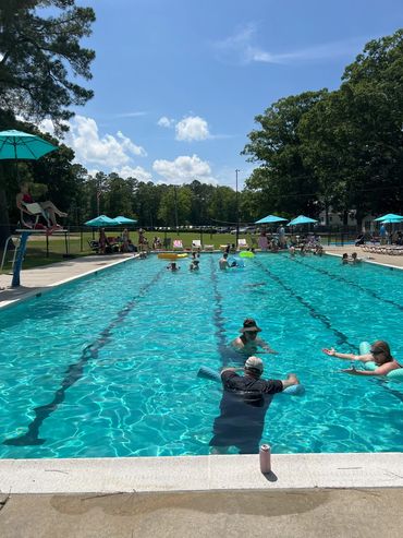 The pool at the country club is a great place to relax and have fun. The main pool area is 25 yards long and gradually gets deeper to accommodate different heights and activities. There is a 12 foot deep end with a diving board to make a splash. There is a fully enclosed baby pool with its own seating area. Other amenities include lounge chairs, tables with umbrellas, restrooms and changing areas.
